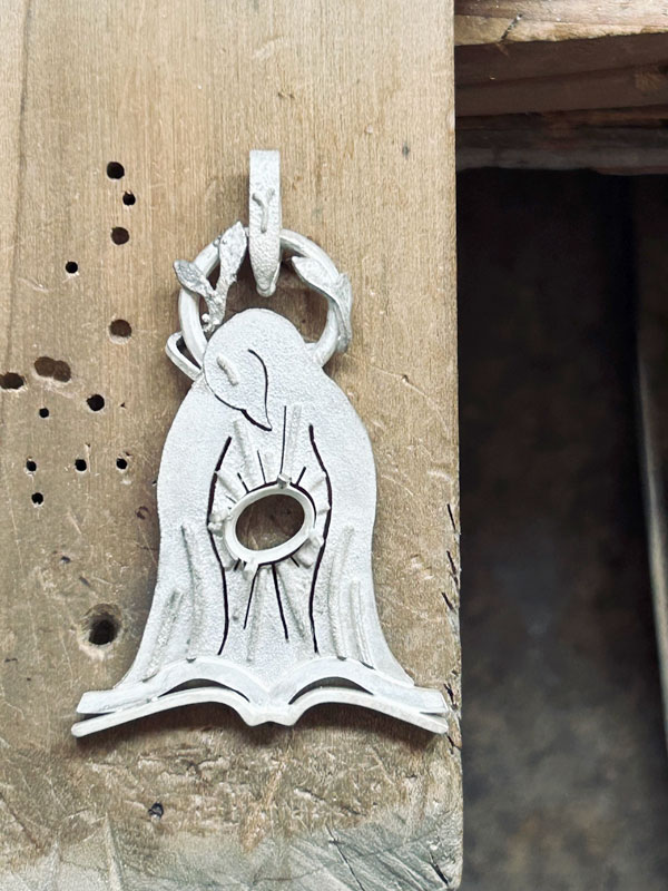 最近は本体とバチカンの組み合わさる位置を、真下ではなく真ん中少し下辺りからぶら下がるようにバチカンの内側に丸棒を一本渡しています。